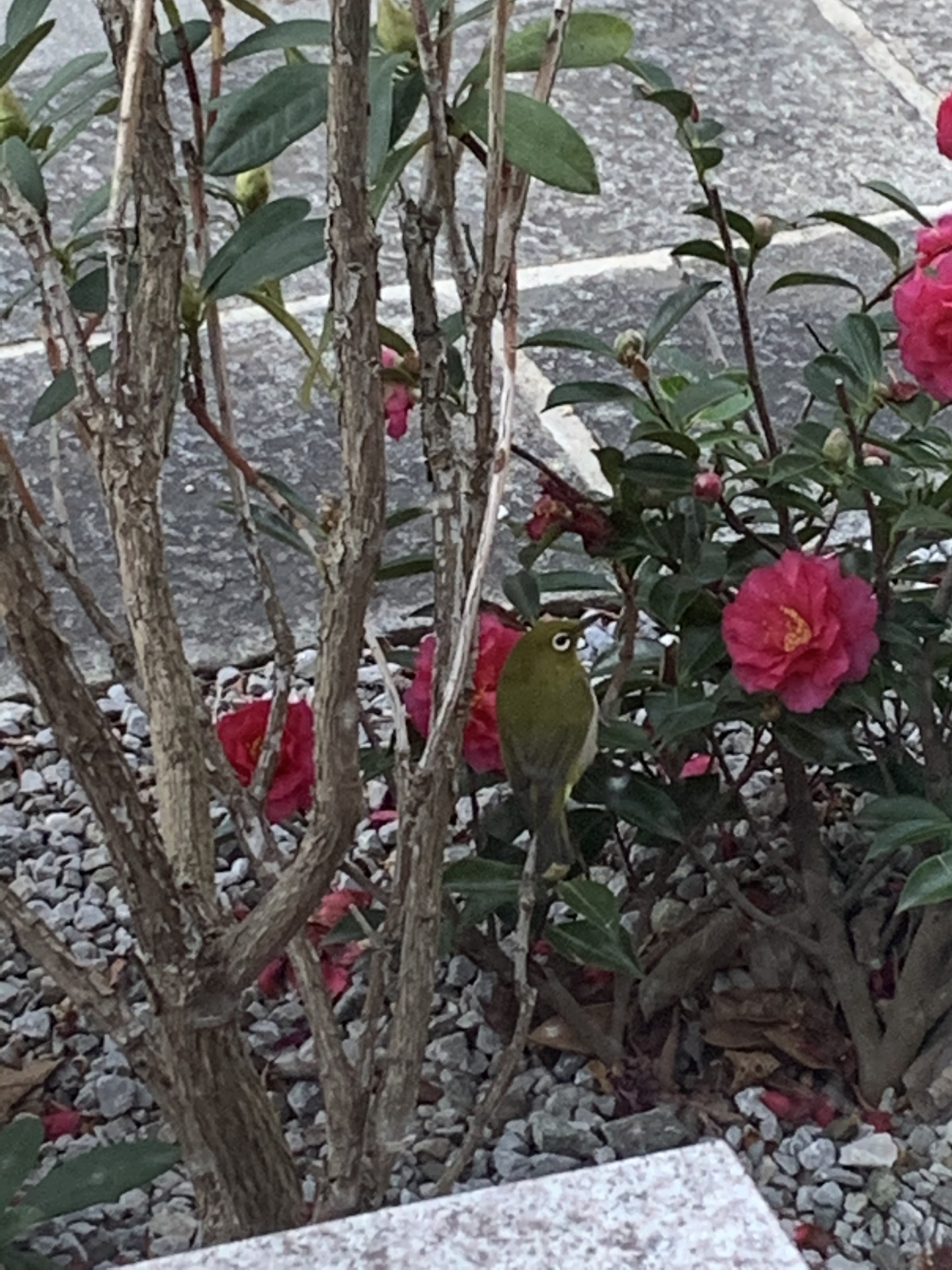 事務所でメジロを見つけました。飼いたいけれど、捕まえたら犯罪です。。。見て楽しみます。小さな幸せ!