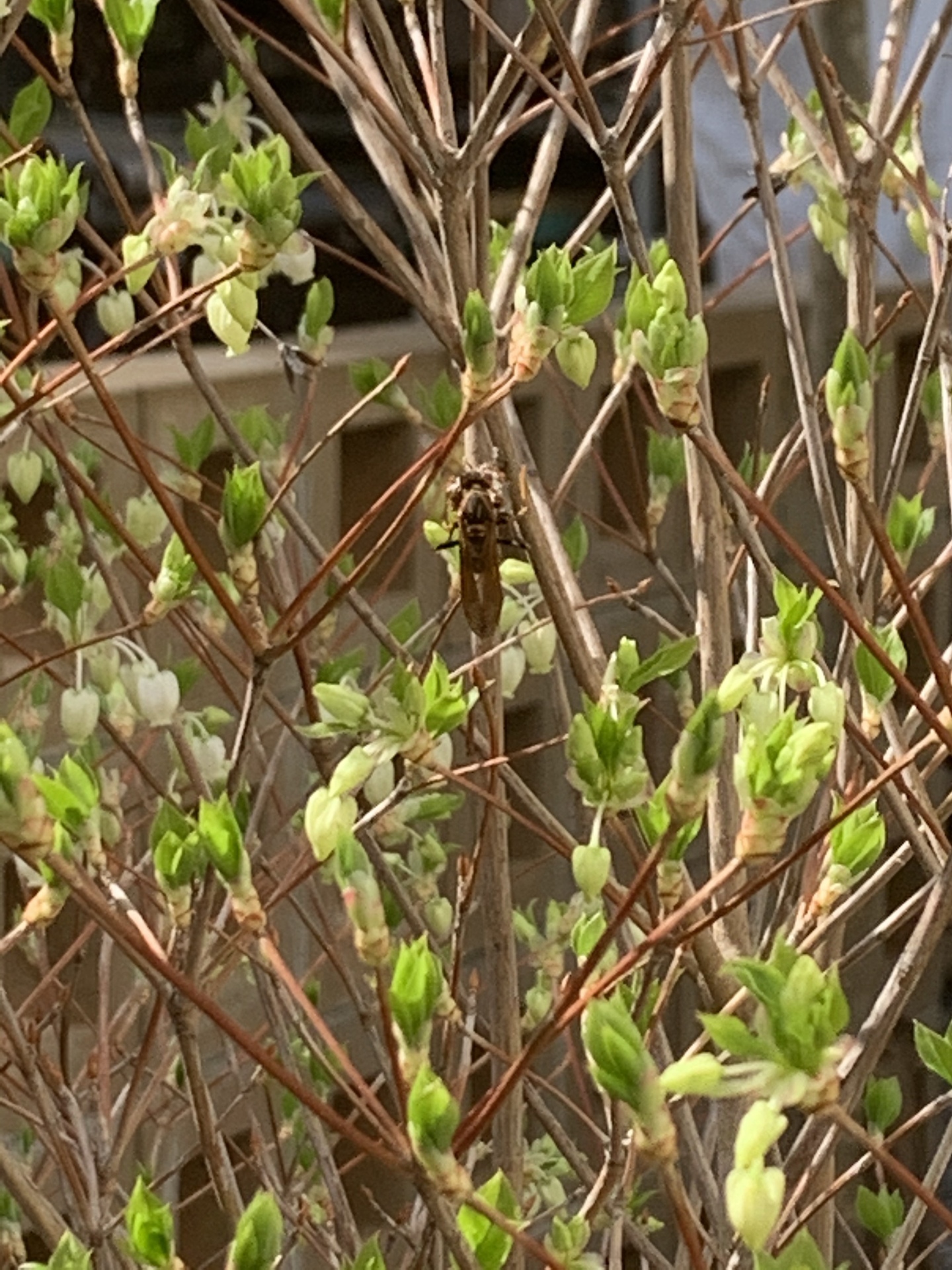蜂が、会社の庭に昨日から巣を作りはじめました。春ですねー⁈