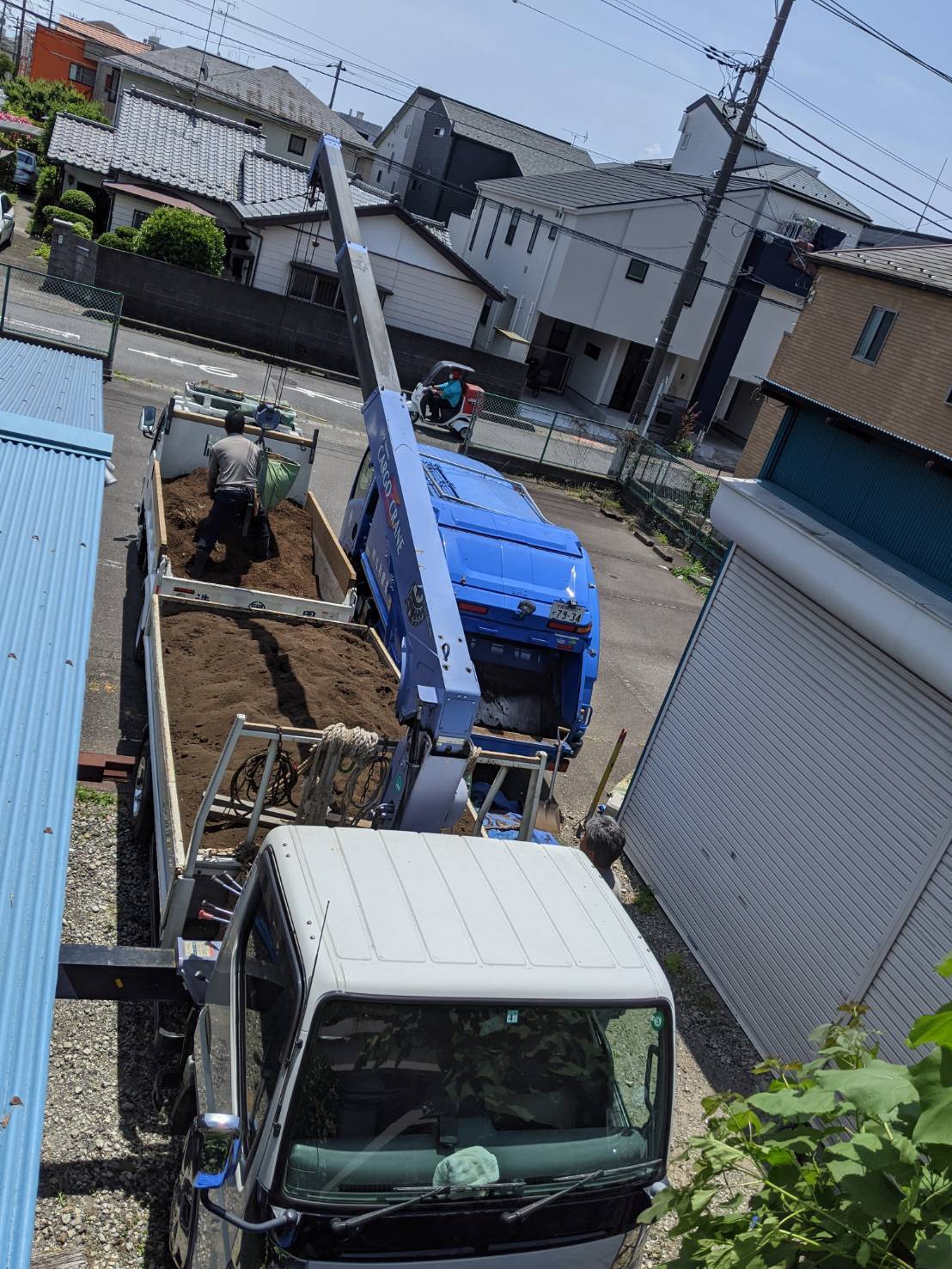 本日は、屋上緑化の土の入れ替えです。クレーン車を使い安全に作業を進めて行きます。