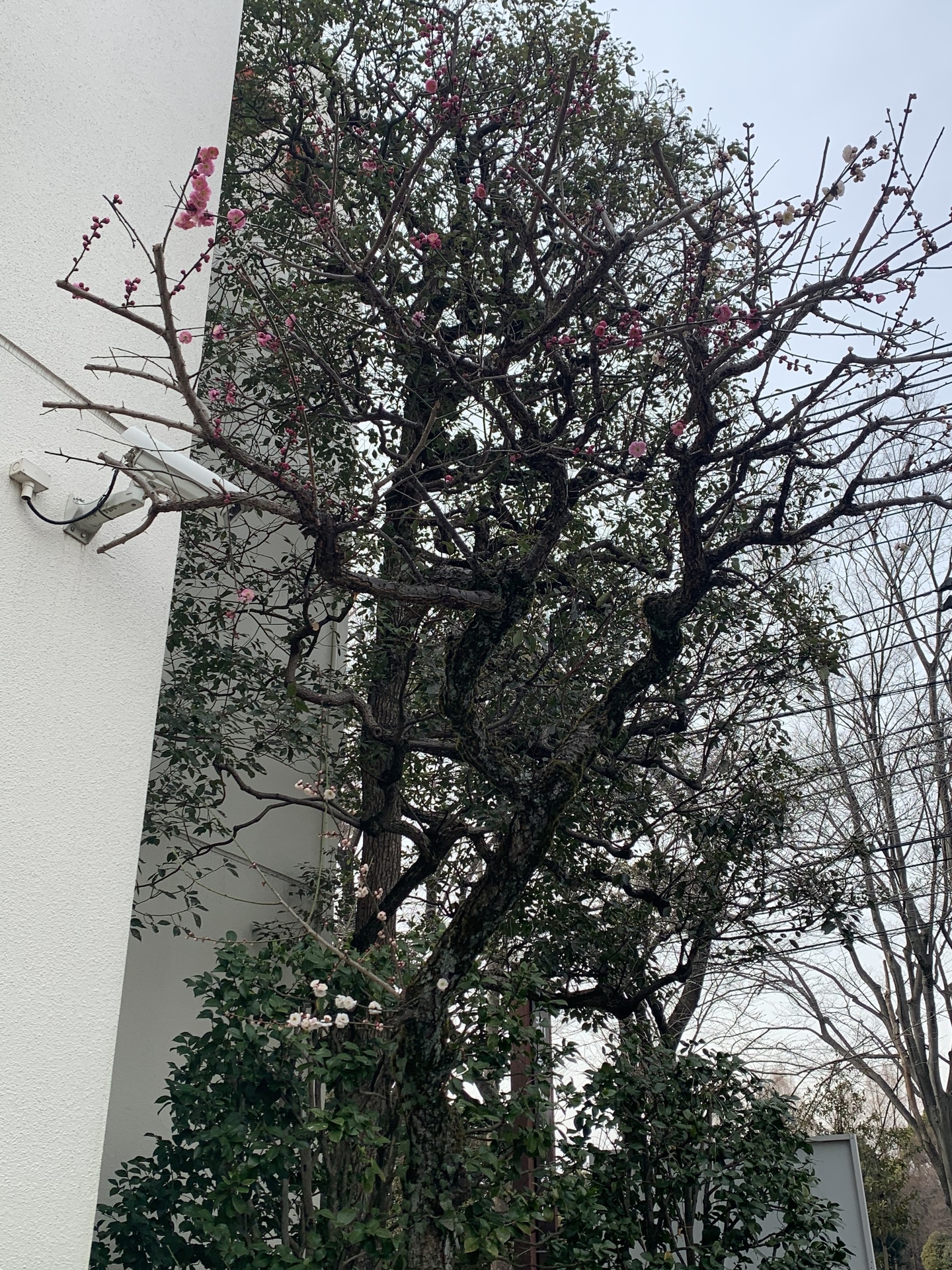 当社で管理している学校の梅の花が咲き始めました。1本の木から白と紅の花が咲いてます。思いのままと言う梅です。