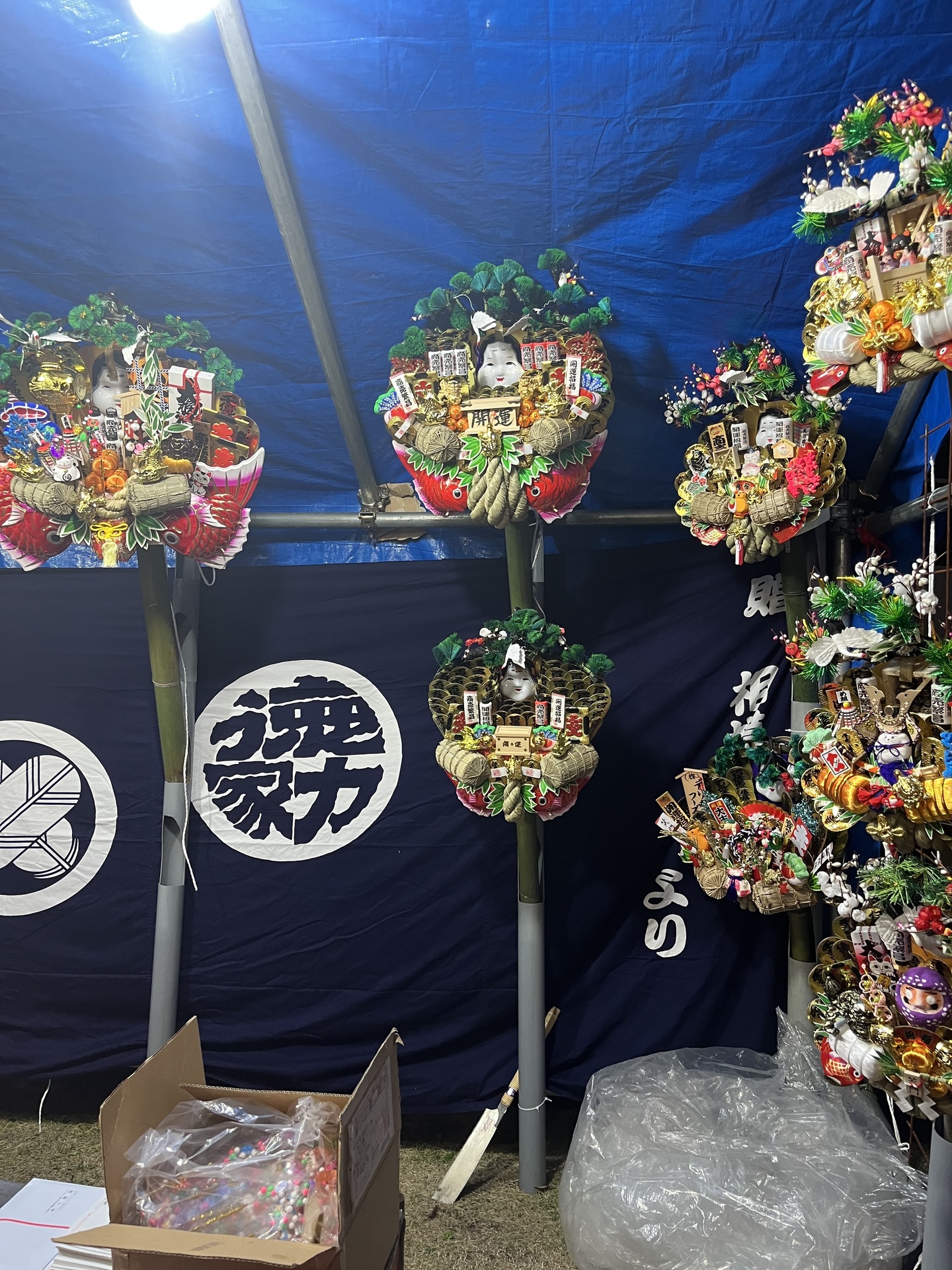 今年は明るい色合いの熊手にしました、明るく前向きに行けるようにです。停滞している日本を明るく!