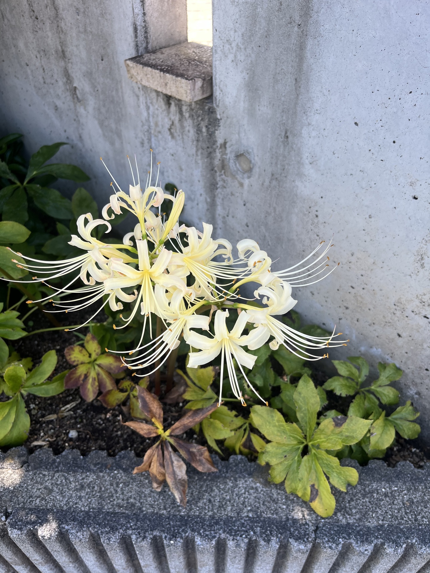 いつまで続くこの暑さ。と、、思い花壇を見ると彼岸花が咲いています。年々開花が遅くなっているみたいですね。